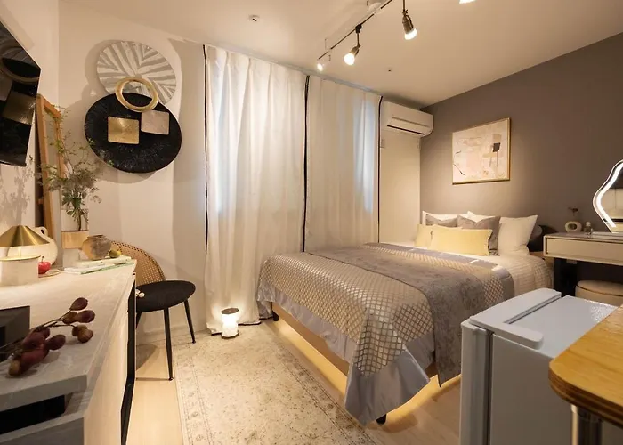 18m²のHotel-Like Simmons Bed Couple Disney Shinjuku 東京都はむりょうじ寺から歩いて5分以内で、江戸川区自然動物園などの家族連れに人気のスポットから6キロメートルの場所にあります。